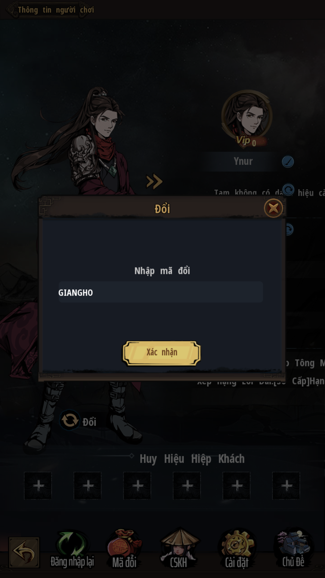 - Hệ thống sẽ thông báo thành công khi nhân sĩ nhập đúng kí tự Giftcode hoặc Giftcode đó chưa sử dụng.