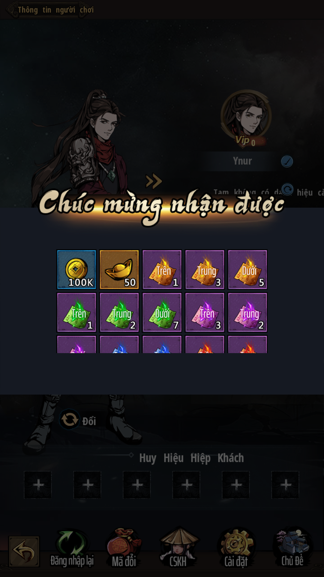 *Lưu ý: Mỗi loại code chỉ có thể kích hoạt 1 lần / 1 tài khoản, hãy cân nhắc kỹ trước khi sử dụng!