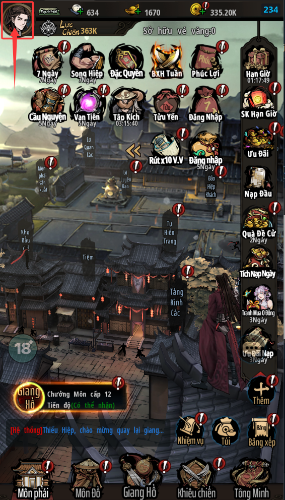 - Tại giao diện màn hình chính, nhân sĩ sẽ thấy phần nhân vật ở bên góc trái, nhấn vào icon nhân vật.
