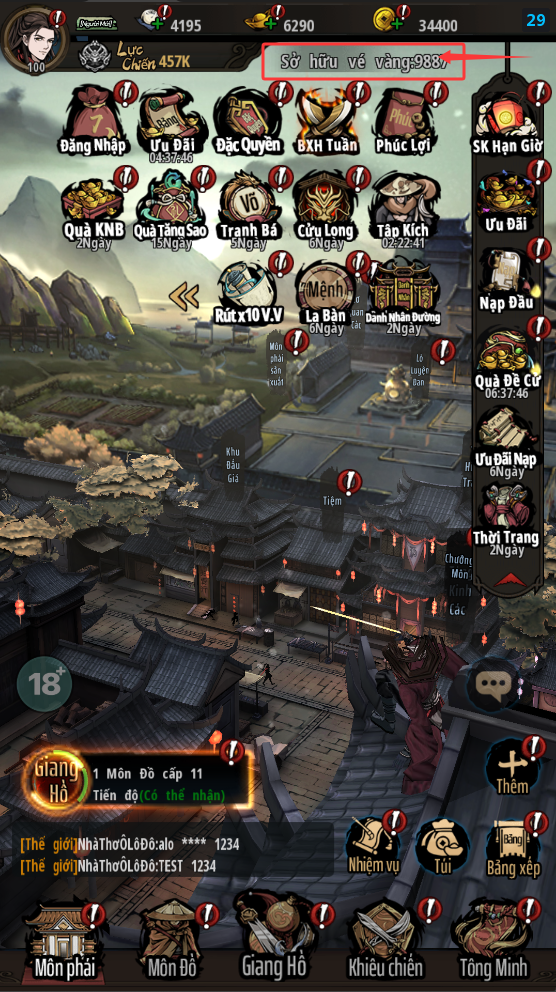 - Nhân sĩ mua Vé Nạp thì trong game sẽ có sửa sổ bật lên thông báo đã nhận được Vé Nạp.