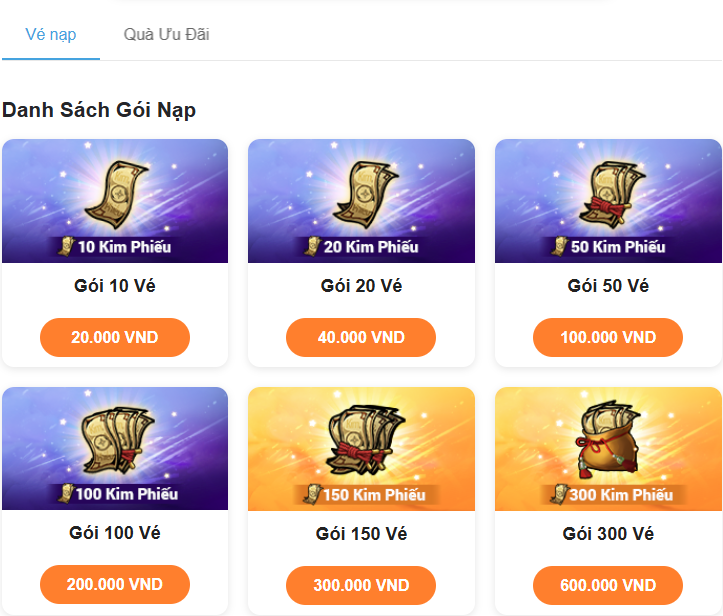 Giao diện mua Vé Nạp