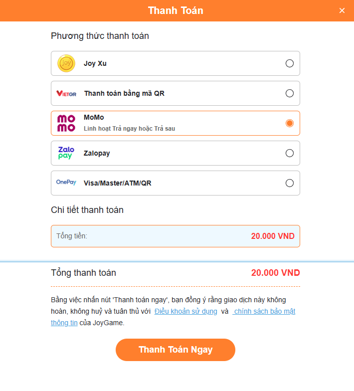 Dưới đây Chu muội hướng dẫn thanh toán bằng Joy Xu, nhân sĩ có thể Nạp Xu Vào Ví theo trang Hướng Dẫn Nạp Xu Vào Ví JOY với nhiều ưu đãi khuyến mãi!