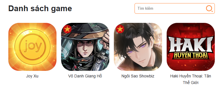 - Sau khi đăng nhập thành công, nhân sĩ chọn game Vô Danh Giang Hồ, để bắt đầu tiến trình nạp của mình.