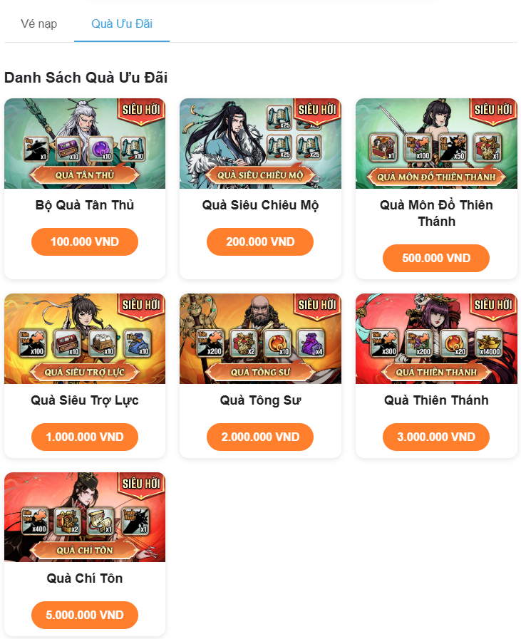 Chu muội sẽ hướng dẫn các nhân sĩ làm thế nào để thanh toán các gói nạp trong game bằng hình thức Vé Nạp nhé.