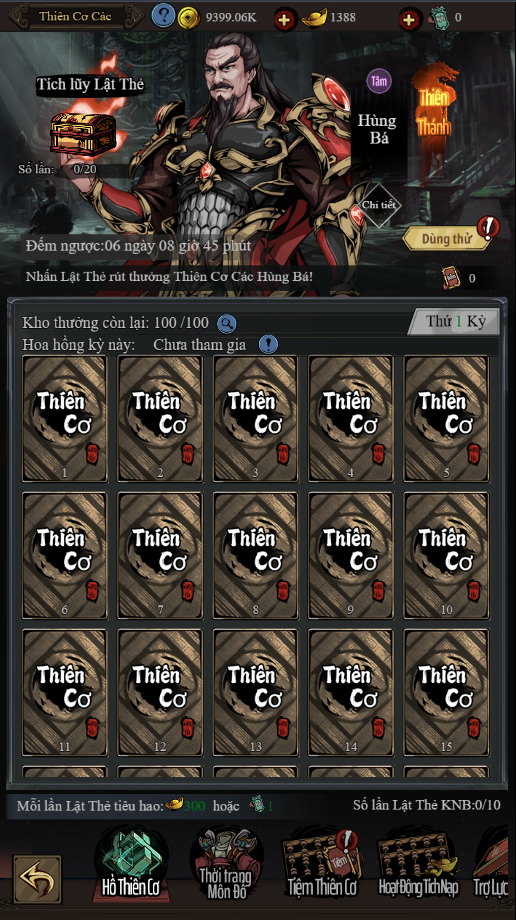 3. Kho thẻ rút thưởng Thiên Cơ Các chia sẽ toản server, dung lượng kho thẻ mỗi kỳ là 100.