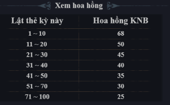 - Số KNB chia hoa hồng phụ thuộc vào thứ tự lật thẻ, lật càng sớm chia cảng nhiều.