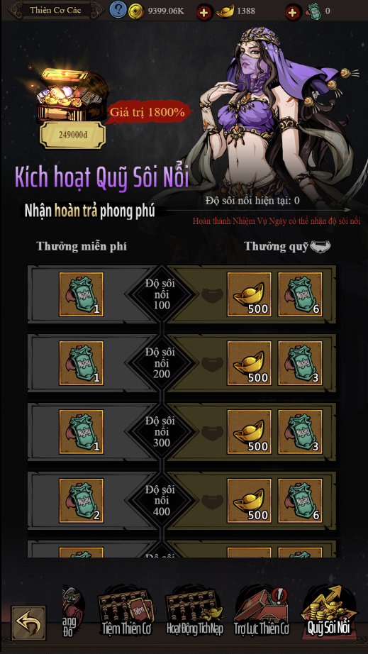 Ở Quỹ Sôi Nổi, vào mỗi ngày khi các chưởng môn hoàn thành các mốc Nhiệm Vụ Ngày khác nhau sẽ những được một số điểm Độ Sôi Nổi dùng để quy đổi các vật phẩm: